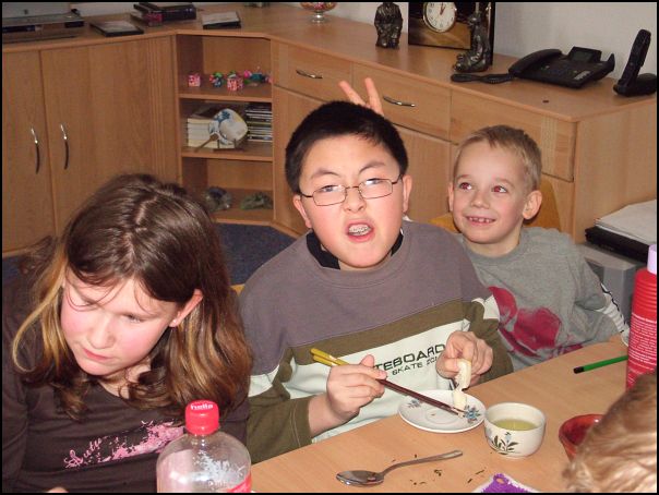 Ralph hatte wieder einmal zum japanischen Essen eingeladen. Spaghetti mit Löffel und Gabel, Suppe mit Stäbchen ...? Hier geht's zum Textbeitrag