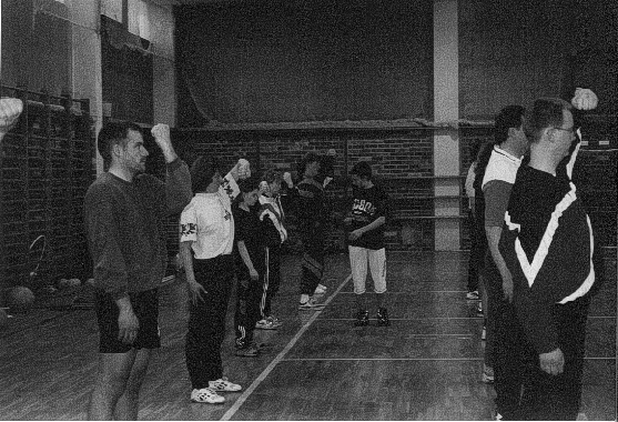 Er machte auf uns einen nicht etwa strengen, abweisenden oder arroganten Eindruck, sondern erwies sich als ein gutmütiger und netter Mensch. Nach einer kurzen Einweisung und Erläuterung des dreiseitigen Lehrgangsprogrammes ging es auch schon los. Bloß gut, daß das Programm nicht nur aus langweiliger Theorie bestand sondern auch aus Praxis, die dann in der Turnhalle unter dem Namen Funktionsgymnastik, Volleyball, Entspannung, Sportspiele oder auch Karate bestand.
