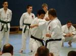 Am Nachmittag war üblicherweise Kata. In der ersten Trainingsgruppe übte Ohta Sensei zunächst diverse Techniken, die nur schwer auf den Inhalt der Trainingseinheit schließen ließen. Doch dann klärte sich alles: Heian Nidan und Heian Yondan wurden geübt. Bei den Fortgeschrittenen standen Kanku Dai und Kanku Sho auf dem Programm. Leider war die Zeit zu kurz, um hier näher auf die Kata einzugehen, jedoch war der Überblick sicherlich hilfreich. Bei den Fortgeschrittenen ließ Ohta Sensei es sich nicht nehmen, beide Kata auch selbst vorzuführen. Man muss ihn dabei einfach erlebt haben. Er läuft die Kata mit einer Leichtigkeit und Sauberkeit in den Techniken, stark, korrekt und erklärt so ganz nebenbei auch noch die wichtigen Punkte. Unfassbar! Aber für diese Leistung erhielt er auch den verdienten Beifall.